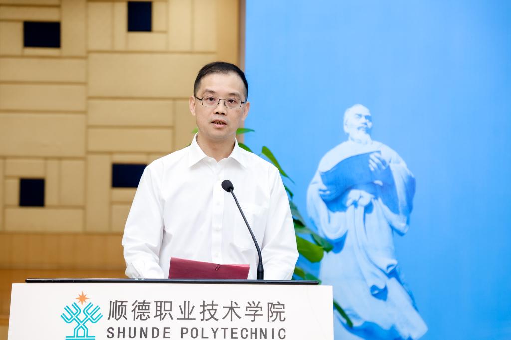 孙凌峰致辞表示,顺职院在社会各界的关怀与支持下,为顺德产业发展提供了大批人才支撑,也为顺德文化传承创新和高等教育发展做出了积极贡献。同学们恰逢盛世,处在人生最美好的阶段,希望大家勤学苦练、精益求精、追求卓越,立志走一条“技能成才、技能报国”之路,努力为学校增光添彩,努力成为大国工匠,展现新时代青年的风采,更希望顺职学子都能成为家庭幸福的支柱、家庭和谐的基石,成为顺德高质量发展的生力军,成为担当民族复兴重任的时代新人。