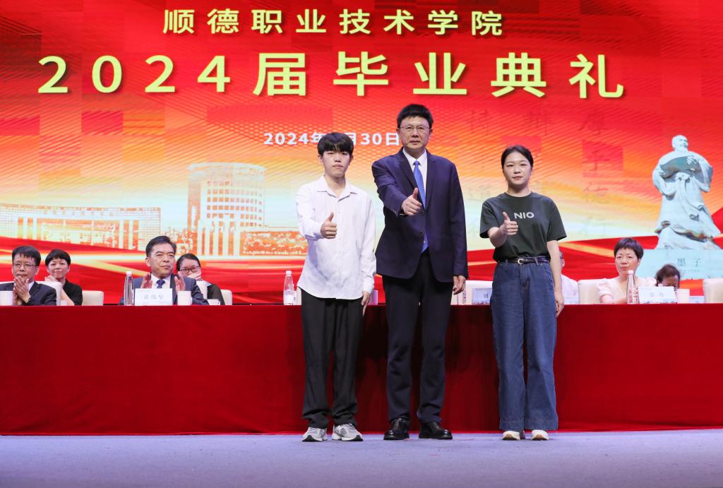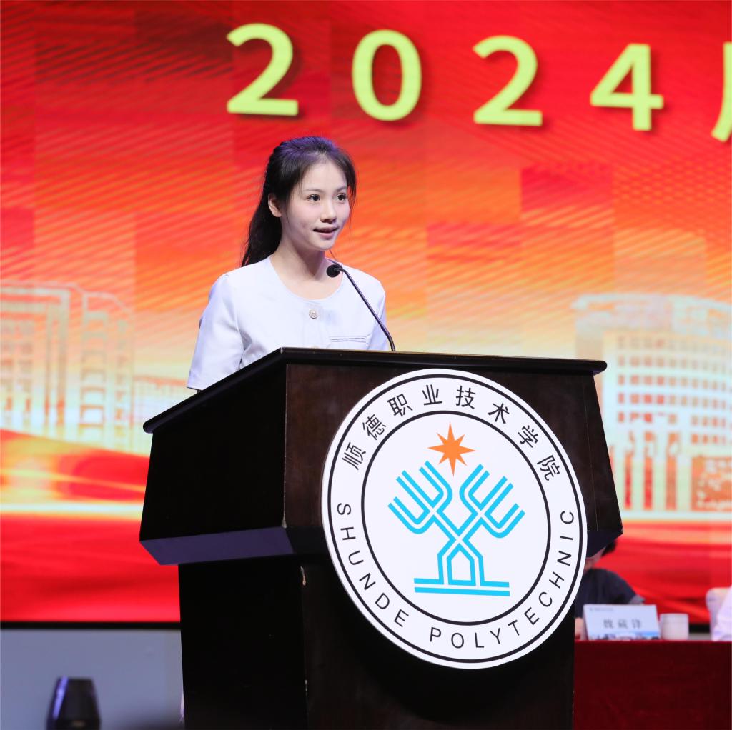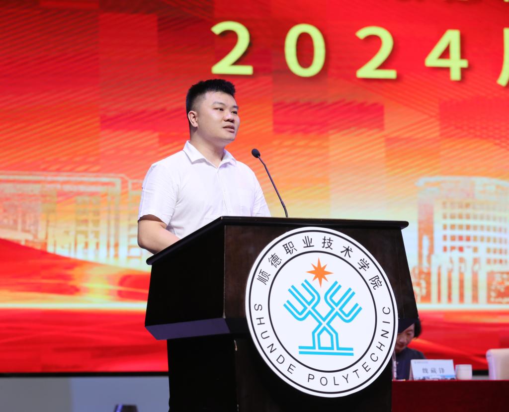 智能制造学院数字化设计与制造技术专业2024届毕业生陈艺霖的父亲陈纯青作为家长代表发言。他表示,感谢顺职院的精心培养,让孩子们具备了在广阔蓝天下自由翱翔的能力,展现出顺职院学子的特有风采。他寄语毕业生们要做一个懂感恩、有担当、敢拼搏的人,“让青春在新的港湾里启航,载着对未来更好的畅想,直挂云帆、乘风破浪。祝愿2024届毕业生鹏程万里、前程锦绣!”
