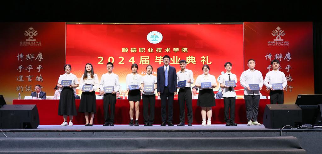 学校党委委员、纪委书记黄伟坚宣读《关于聘任顺德职业技术学院2024届校友联络员的决定》。为进一步加强学校校友的联络与发展,更好地凝聚和激发校友力量,学校聘任郭泽浩等155名同学为2024届校友联络员。他们将作为本班级、专业校友活动的组织者、联络者、宣传者,架起母校与校友间情谊的桥梁。李先祥为校友联络员代表颁发聘任证书。