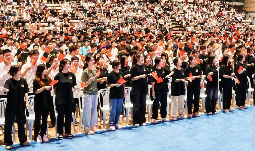 时光知味,岁月沉香。典礼开始前,同学们凭歌寄意,现场演唱《追光者》《最美的太阳》《凤凰花开的路口》《如愿》《海阔天空》等曲目。歌声诉说着对人生梦想的执着追求、对未知世界的无限好奇、对未来生活的美好憧憬,台下同学们挥动着手中的国旗齐声合唱,现场成为欢乐的海洋。
