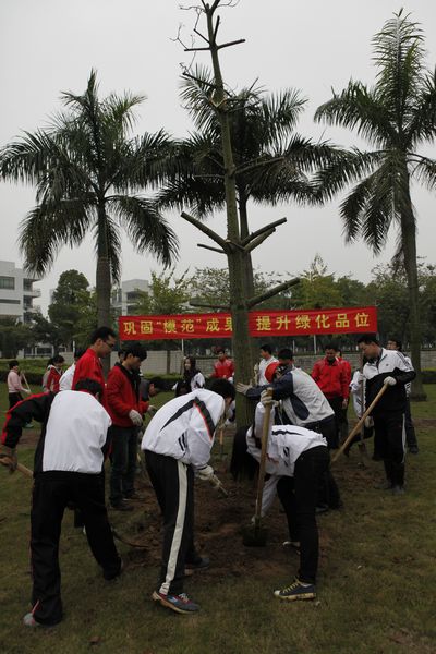 参加本次活动的有陈粟宋副校长,教职工代表80人,学生代表40人及绿化人员50人。他们分别在桃苑饭堂、运动场、行政楼、学术交流中心和教学区等周边地点开展种植活动。本次种植的苗木主要有桂花、白兰、黄花风铃木、美丽木棉、木棉、蓝花楹、鸡蛋花、细叶榄仁、盆架子、美丽针葵等20多个品种共230株,在品种的选择上突出香化、花化、色化树种。