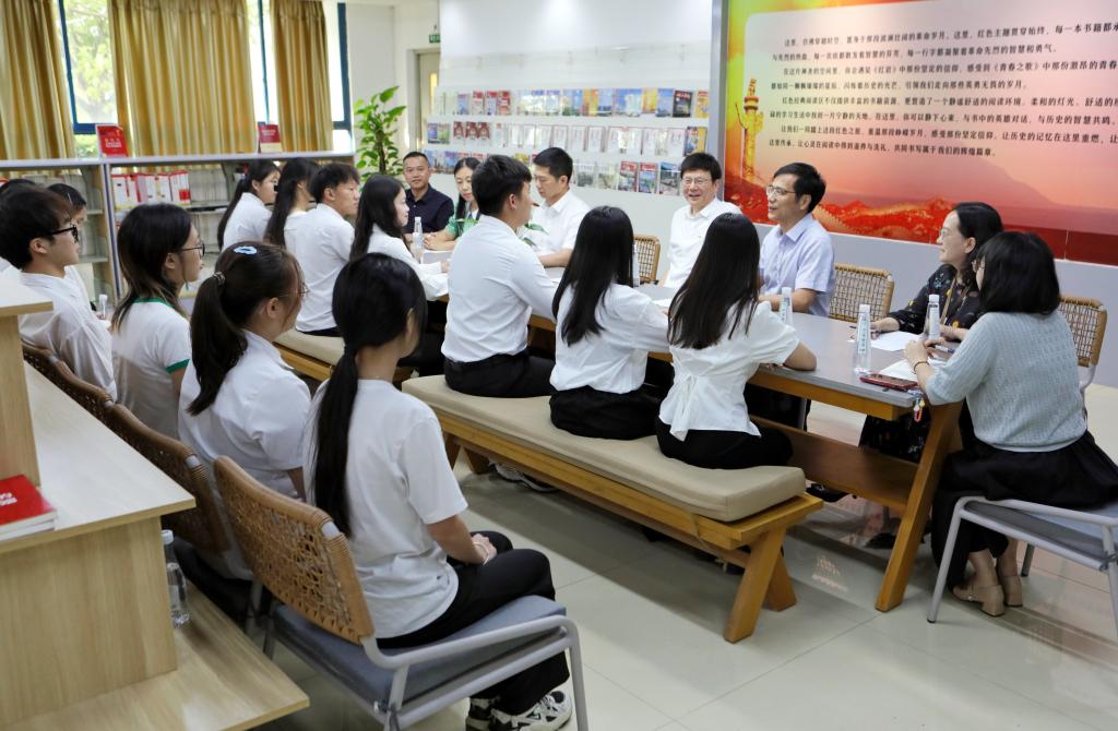10月10日,学校党委书记李先祥在图书馆一楼红色阅读空间与taptap“习新社”学生代表座谈交流,寄语同学们深入学习贯彻党的二十届三中全会精神和全国教育大会精神,坚持不懈学思践悟习近平新时代中国特色社会主义思想,牢记习近平总书记殷殷嘱托,坚定信念听党话、跟党走,立报国强国大志向、做挺膺担当奋斗者,以实际行动在强国建设、民族复兴伟业中贡献青春力量。组织人事处、党委宣传部、校团委、图书馆负责人等参加活动。