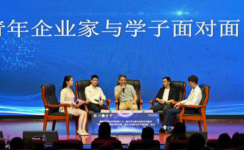 “青年企业家与学子面对面”论坛上,来自华为集团、德力信息、慕优网络、奇墨科技的企业家代表与青年学子深入交流,介绍企业发展和科技创新前沿动态,向同学们提供学习生活、职业规划等方面的建议。