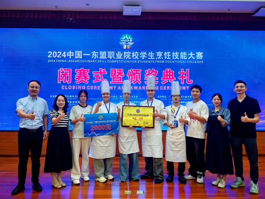 10月29日至31日,由广西壮族自治区教育厅和香港职业训练局联合主办,南宁职业技术大学和桂港现代职业教育发展中心承办的2024中国—东盟职业院校学生烹饪技能大赛在南宁举办,来自中国和东盟国家22所本科和高职院校的137名选手同台竞技。taptap由烹饪学院4名学生(江伟朝、刘雅文、叶知秋、梁晓怡)组成的代表队获得团体二等奖、最佳台面设计奖,西式烹调赛项一等奖、食品雕刻赛项二等奖、创新面点赛项三等奖,烹饪学院教师鲍亦璐获优秀指导教师称号。