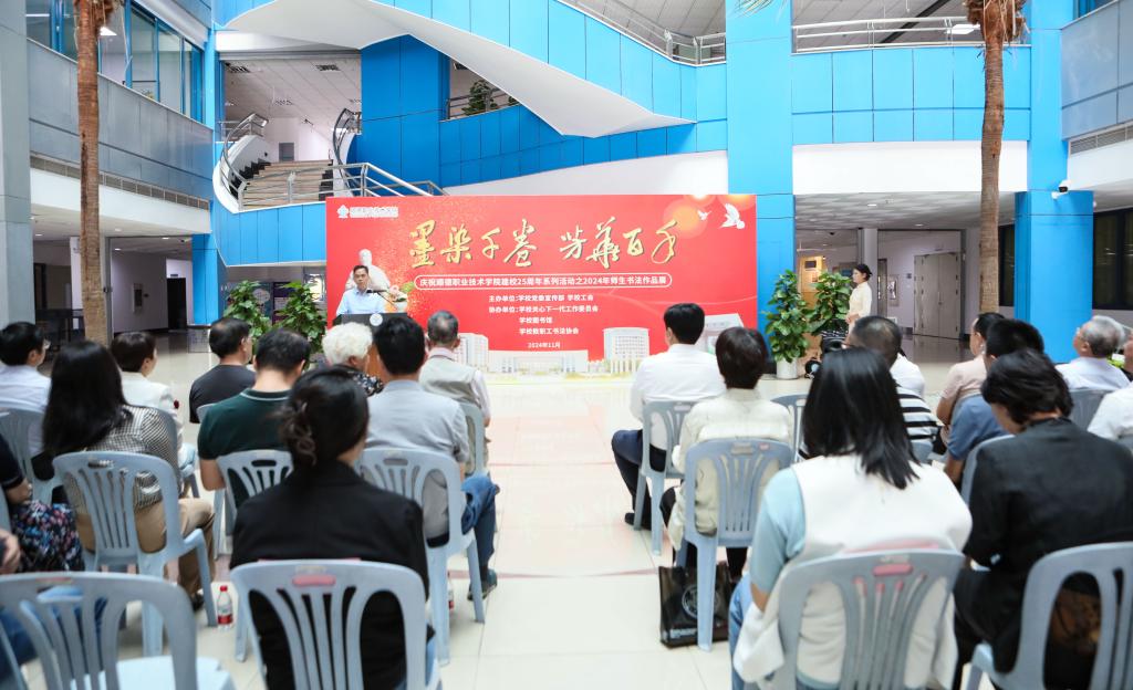 11月6日下午,由学校党委宣传部、校工会主办,关心下一代工作委员会、图书馆、教职工书法协会协办的庆祝建校25周年系列活动之2024年师生书法作品展在图书馆一楼开幕,展览将持续至12月6日。
