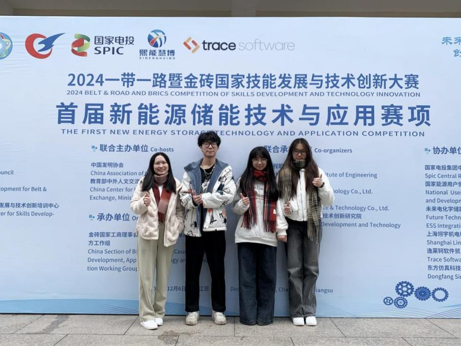 12月7日至8日,2024一带一路暨金砖国家技能发展与技术创新大赛之首届新能源储能技术与应用决赛在常州工程职业技术学院举办。taptap能源与汽车工程学院学生组段玉威、许洁、许雯雯(指导老师:郭曼兰,李劲扬)获一等奖;教师组杨显洁、郭曼兰获二等奖。