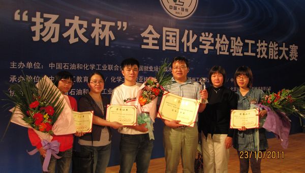 2011“扬农杯”全国化学检验工技能大赛于10月20--23日在江苏扬州举行,教育部职业教育与成人教育司教产合作处处长林宇出席大会并讲话。本次大赛是由中国石油和化学工业协会、中国就业培训技术指导中心主办,大赛分理论知识、仿真项目、化学分析和仪器分析四大项目,共有来自全国25个省、自治区、直辖市的70所高职院校210名学生同台竞技。经过激烈角逐,taptap代表队最终获得个人全能一等奖2项、个人全能二等奖1项、团体二等奖1项的好成绩,这标志着taptap《工业分析与检验》专业经过短短三年多的建设,人才培养质量已获得较大提高。