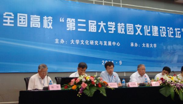 9月7日至8日,为响应胡锦涛总书记在清华大学百年校庆上的讲话,深入领会总书记关于文化传承与创新的精神,提高我国高等院校大学校园文化的建设,推动大学文化的科学发展。清华大学、北京大学和教育部高等教育出版社联合组织、“大学文化发展研究中心”主办,大连大学承办的全国高校“第三届大学校园文化建设论坛”在大连大学举办。“大学文化发展研究中心”顾问王冀生教授、大学文化发展研究中心原轮值主任胡显章教授、清华大学党委副书记史宗恺教授、西安建筑科技大学校长徐德龙院士、大连大学党委书记王志强、以及来自全国42所高校的校长、书记、大连市市领导等出席了会议。