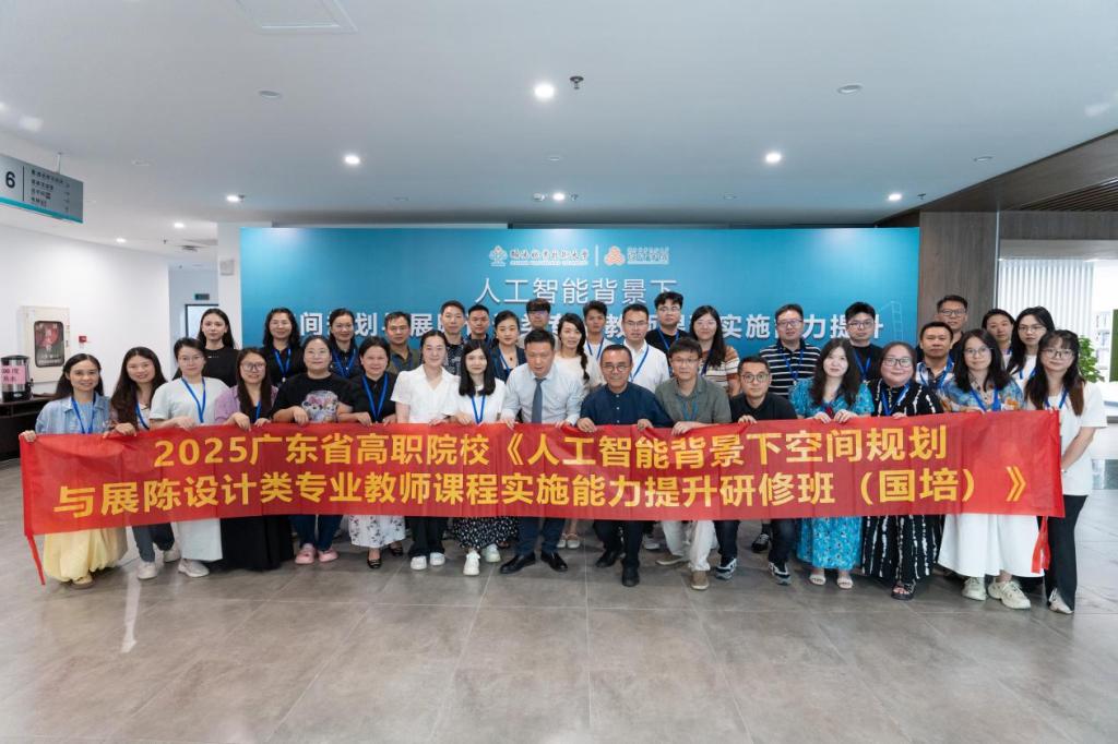 7月1日上午,2025年广东省职业院校“人工智能背景下空间规划与展陈设计类专业教师课程实施能力提升研修班(国培)”在taptap图书馆举行开班典礼,为期14天的国家级培训项目正式拉开帷幕。taptap党委委员,副校长李天赠,设计学院领导班子成员和来自广东省23个高职院校共计40位教师学员参加活动。