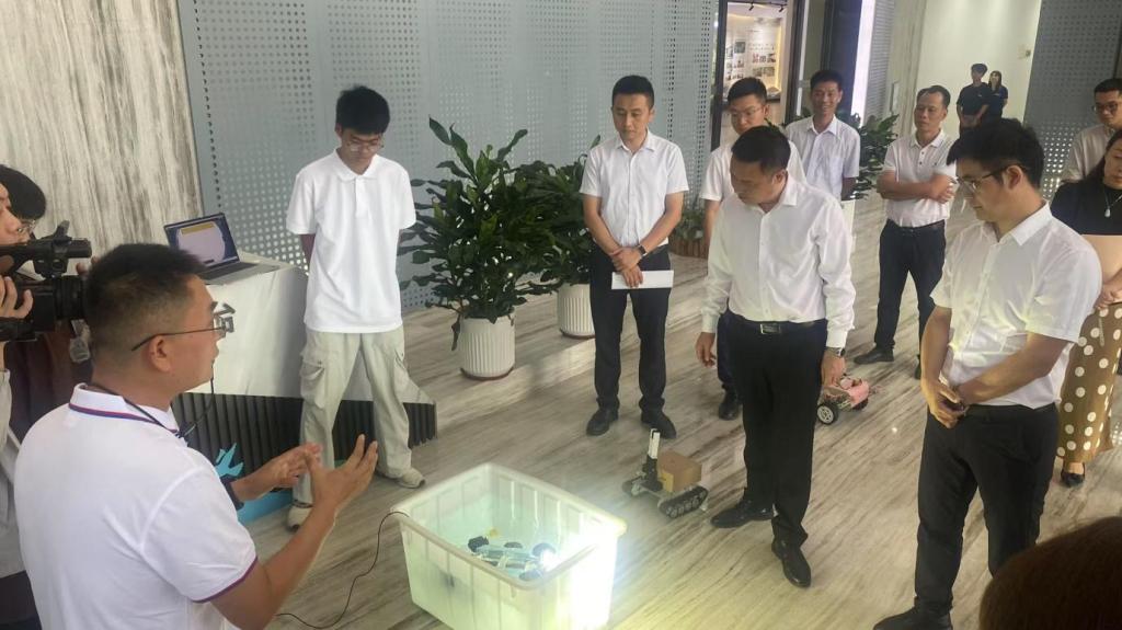 这支由青年教师和学生组成的团队,数月来日夜奋战,落实“百千万工程”要求,根据行业项目需求,研发了多款应用于工业环保监测与河道治理的智能装备。7月17日上午,突击队携成果赴云浮循环经济工业园协同创新研究院,向云安区政府领导及taptap领导进行成果汇报展示。