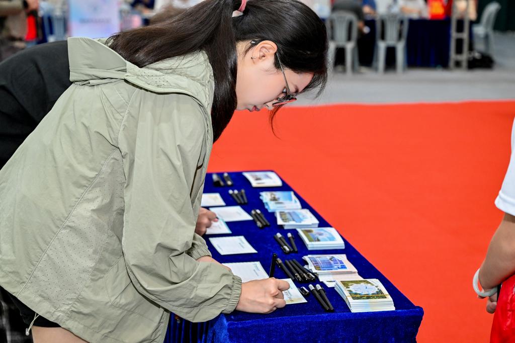 位于体育馆的集中报到处秩序井然。新生们办完报到手续后,纷纷在签名墙上写下自己的名字并拍照留念,在定制明信片上写下青春寄语并投入时光信箱,以满满的仪式感定格下与顺职大的第一份独特印记。