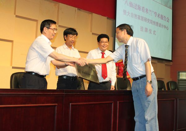 报告会除主题报告外还举行了校企合作活动。邹时智副校长、萧浩智副局长、佘建彬副总裁为校企共建并建在taptap的“大自然家居创意设计研究中心”授牌。佘建彬副总裁为设计学院彭亮、谢穗坚、梁耀明、张恒分别颁发了大自然家居研究院副院长、副主任和首席专家的聘书。