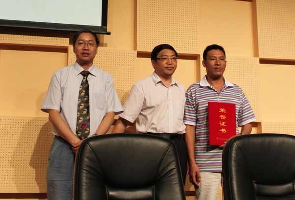 陈粟宋副校长、设计学院彭亮教授接受了佛山市宏越房地产有限公司董事长欧健章的建筑设计教学模型捐赠,陈粟宋副校长为佛山市宏越房地产有限公司颁发了捐赠证书。