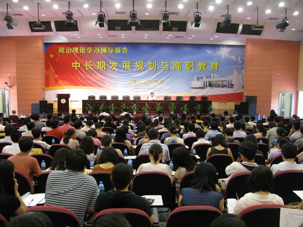魏中林副厅长在报告中从《国家中长期教育改革和发展规划纲要(2010—2020年)》和《广东省教育改革和发展规划纲要(2010-2020)》这两个《纲要》的起草和完成的背景要素、纲要与高等教育和高等职业教育的问题以及近期教育形势等三个方面作了详细的阐述。