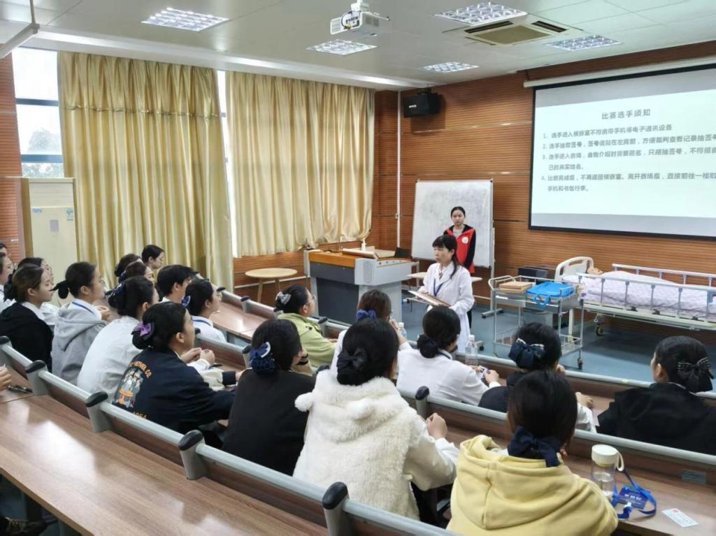 大赛为个人赛,竞赛内容由“技能操作任务”和“文字表达任务”两部分构成,全面考核选手的实践操作能力与反思总结水平。技能操作环节模拟“医院”真实场景,由赛前抽签决定顺序,重点考察选手的应变与照护能力。文字表达任务则要求选手结合实操经历,撰写反思报告,深入剖析照护过程中的得失与感悟,体现出良好的职业反思与提升意识。