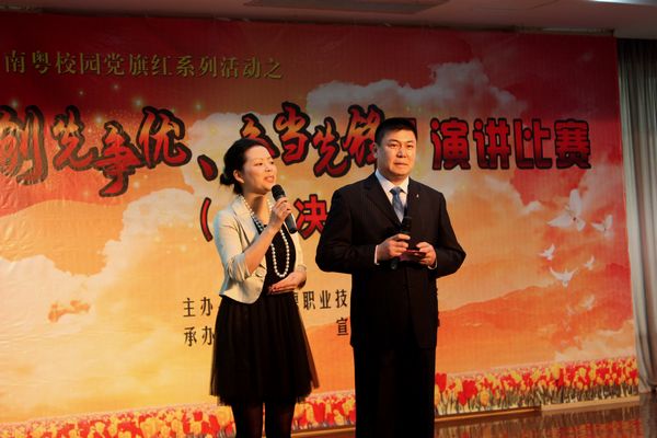 3月30日下午,由中共顺德职业技术学院委员会主办,学校党委宣传部承办的“创先争优 争当先锋”演讲比赛总决赛在行政楼九楼教工活动中心隆重举行。学校领导陈智、邹时智、谭谦章和教师代表观看了比赛。广东省著名表演艺术家高侠,广东省戏剧家协会成员王丽,佛山市委宣传部理论科科长唐锋军担任本次大赛评委。