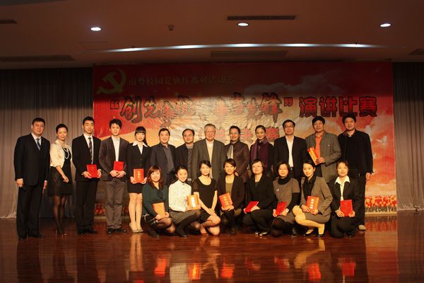 学校党委副书记、副院长邹时智为本次大赛致辞。他说,今年是中国共产党成立90周年,也是“十二五”开局之年。党的十七届五中全会站在历史的新高度,对未来五年我国经济社会发展进行了全面布署,描绘了我国新世纪第三个五年的宏伟蓝图,并鲜明提出以科学发展为主题,以加快转变经济发展方式为主线,作出了我国仍处于可以大有作为的战略机遇期的重大判断,机遇来之不易,形势催人奋进!我们必须要以历史的责任感珍惜机遇,不辜负党的期望和人民的重托,努力办好人民满意的地方高等教育!以优异成绩向建党90周年敬礼!本次演讲比赛就是以颂扬建党90周年来的伟大成就,颂扬先进典型人物为主要内容,引导基层党组织和党员更好地发挥战斗堡垒和先锋模范作用,努力创建“五个好”先进基层党组织,积极争当“五带头”优秀共产党员,全面营造“创先争优、争当先锋”的浓厚氛围。
