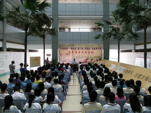 本次签名售书义卖活动现场气氛热烈,师生们踊跃购书,不到一小时,就售出了300多本,教育基金会人员对此予以了高度评价。
