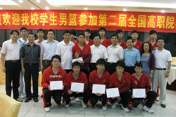 此次全国高等职业院校男子篮球锦标赛获得了学校领导的高度重视,夏伟校长专门听取了工作汇报,指示要拨出专款参加比赛。同时,为确保比赛任务的顺利完成,学校确定了由纪委书记、体委主任谭谦章担任领队,人文教育系党总支书记曾庆云担任副领队,人文教育系蔡义老师担任主教练,高宏全老师担任助理教练,医学系罗艳勤老师担任队医的工作小组。