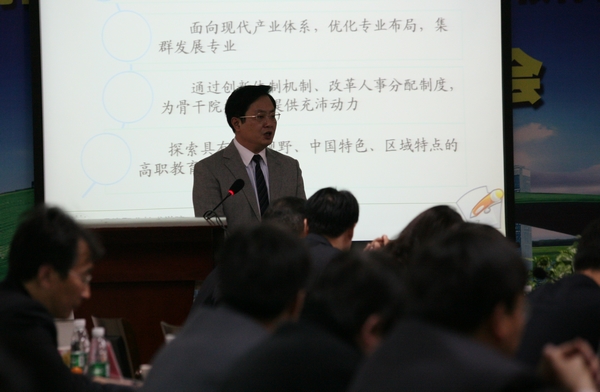 论证会上,夏伟院长对学院整体建设方案作了10分钟的PPT汇报,随机抽取的家具设计与制造、制冷与冷藏技术2个骨干专业负责人对专业建设方案作了8分钟的PPT汇报。根据学院材料及现场汇报,每一位专家均对学院骨干院校建设目标、建设内容和可监测目标进行了询问和讨论。专家组在经内部讨论后,宣读了我院骨干高等职业院校建设方案的《专家论证意见》。