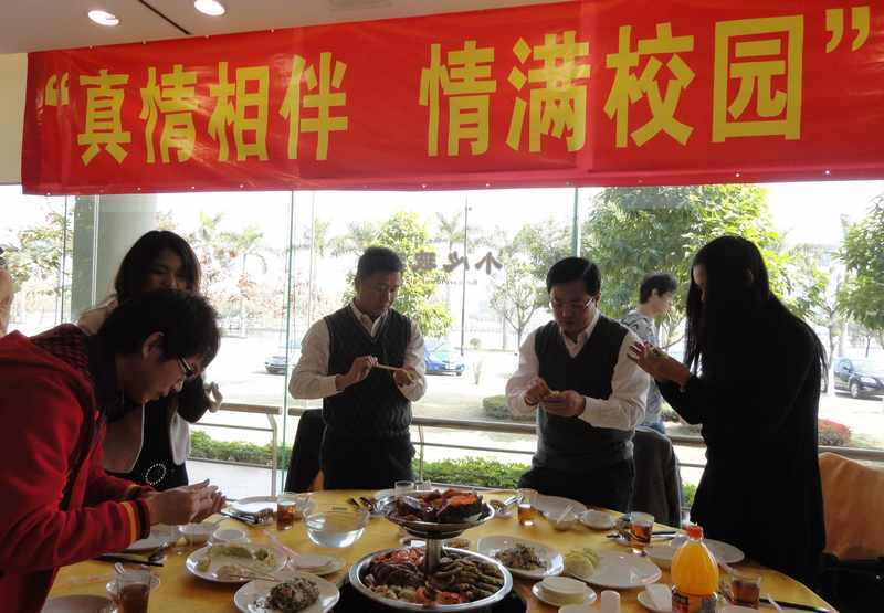 随后,夏伟院长等领导和留校学生代表在学校教工餐厅同包幸福饺子、喜迎新春,并向同学们发放新年红包。