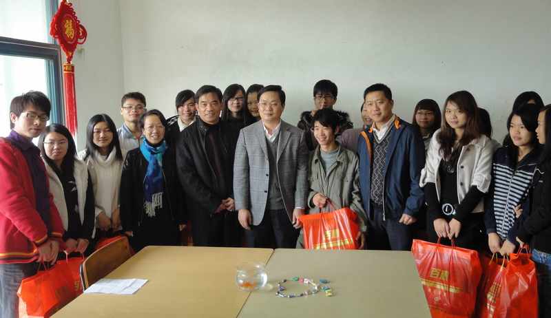 taptap领导夏伟、何锐连、谭谦章、徐刚,共青团顺德区委书记柯宇威,学生处负责人、各系(院)书记等深入学生宿舍,看望并慰问了taptap寒假留在学校的学生。