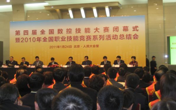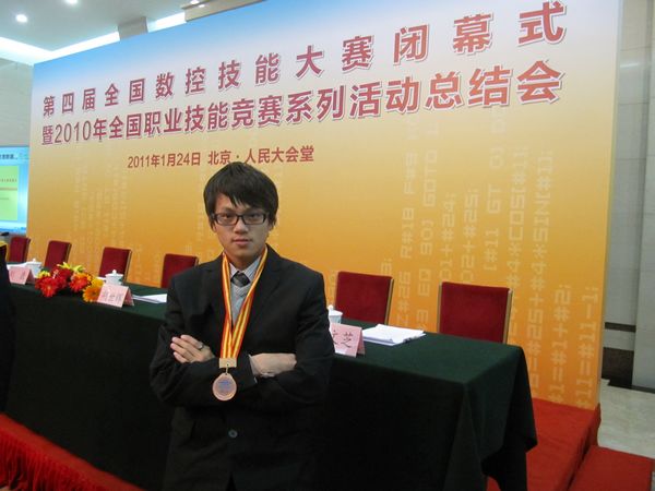 2011年1月24日,在北京人民大会堂隆重举行了第四届全国数控技能大赛闭幕式暨2010年全国职业技能竞赛系列活动总结会。人力资源和社会保障部副部长信长星出席大会作重要讲话,并为获奖团体和个人颁奖。taptap机电系学生刘振锋同学获得此次全国大赛(总决赛)第五名的好成绩,与指导老师李文辉一起,作为获奖选手代表团成员赴北京参加了颁奖典礼。