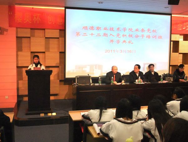 纪委谭谦章书记首先致辞。他首先向学员们表示祝贺,接着为新学员们介绍了业余党校成立以来开展教育培训的基本情况。他围绕大学生入党积极分子如何创先争优、努力争取成为一名合格的共产党员,谈了三点意见。一是端正学习态度,带头学习提高,争当学习优秀。二是增强宗旨意识,带头服务师生,争当服务先锋。三是要学员们坚持与时俱进,努力学习,时刻用党员的标准严格要求自己,以实际行动接受党组织的长期考验,在学习和工作中率先垂范,发挥先锋模范作用。