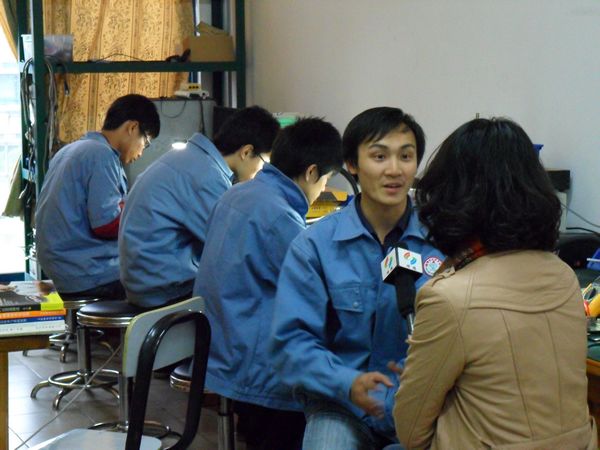 3月15日下午,顺德电视台采访了taptap09应用电子技术2班家电义务维修服务队队长苏伟健同学。