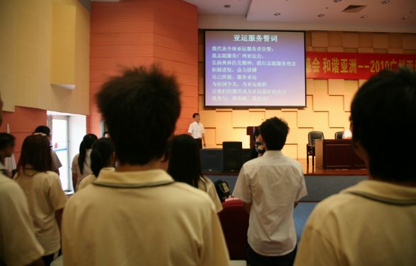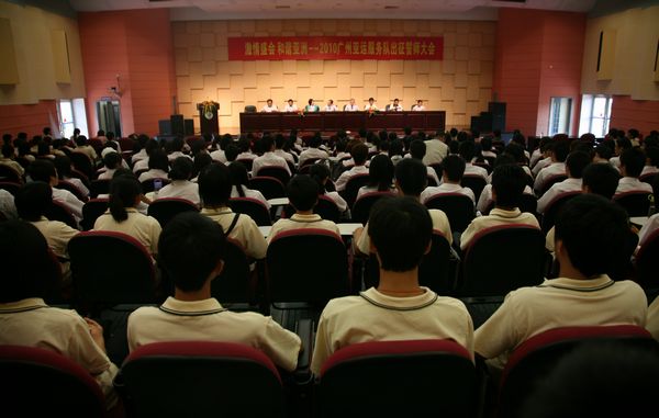 教师代表白琳和餐饮服务学生代表冯远征、酒店服务学生代表张恒毅先后发言,纷纷表示绝不辜负学校重托,高效率的完成亚运服务工作。
