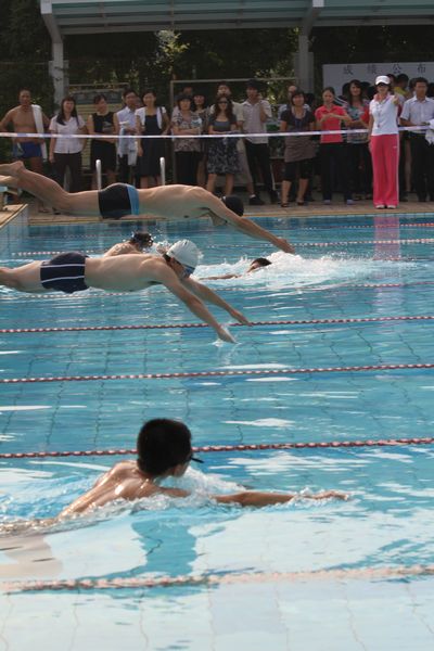 为丰富教职工的业余文化生活,开展全民健身运动,提高教职工的健康水平,工会于年10月13日下午在学院游泳场举办了2010年度教工游泳比赛,共有80多人次参加了12个组别的比赛,赛场上运动员们你追我赶,如蛟龙一般在水中畅游,整个游泳场人声鼎沸,加油声、呐喊声此起彼伏,最后由黄再明、张海清等人分获了12个组别的冠军。