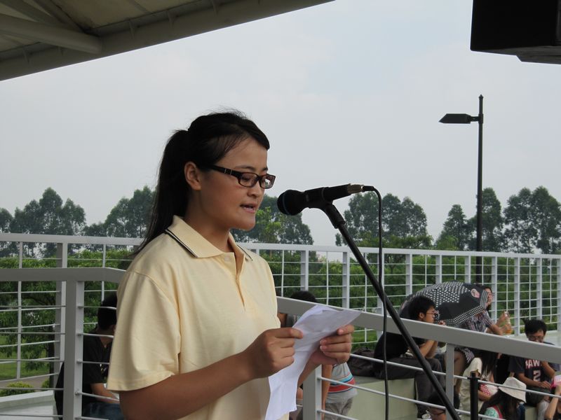 机电系模具二班王溢男同学代表全体新生在会上发言,她表示一定会服从教官,刻苦训练,认真完成军训任务。