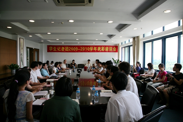 首先由学生记者团指导老师蒋琳对记者团2009-2010学年的工作作了详细的总结,代表全体学生记者向一直关心和支持大学生记者团工作的领导、老师和学生表示衷心的感谢。
