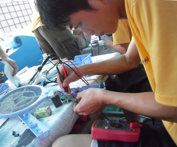 学生处、校团委和电子工程系领导十分重视这两支队伍,陈曦处长、张业华副书记等每天进行电话慰问关心,石玉财书记、蔡永昶副主任多次亲临义修现场指导实践,让参与服务的师生们深受感动和鼓舞。大良街道是本次活动去往的第七站,服务队从7月11号开始启动以来,走过了顺德七个镇(街道),11个社区(村委会、居委会),总行程达200多公里,共有95名师生参与。共收到家电2186件,修好家电1739件,上门服务20余次;共收到手机215台,修好179台;整个活动期间,共派发了安全用电知识、日常家电维护和手机维护宣传单张2000多份,接待群众达2000多人,为300多名居民进行安全用电知识和手机维护知识讲解。