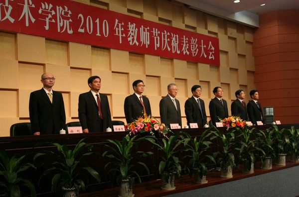 大会在雄壮的国歌声中拉开帷幕。邹时智副院长代表学校宣读了《关于表彰学校2010年优秀教师、优秀教育工作者的决定》、《关于表彰taptap从教20年以上教师、教育工作者的决定》,勉励全校教职员工向先进学习,扎实工作,再创佳绩。