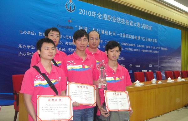 2010年全国职业院校技能大赛高职组共设7个竞赛项目。通过广东省选拔赛,taptap共获得了4个赛项的一等奖,代表广东省参加了这4个赛项的天津总决赛。经刻苦训练和奋勇拼搏,taptap参赛选手在总决赛中荣获“1金1银2铜”的喜人成绩:
