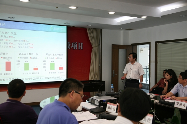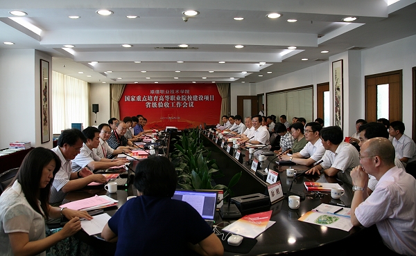 根据《教育部 财政部关于实施国家示范性高等职业院校建设计划 加快高等职业教育改革与发展的意见》(教高〔2006〕14号)、《教育部 财政部关于国家示范性高等职业院校建设计划管理暂行办法的通知》(教高〔2007〕12号)和《教育部办公厅 财政部办公厅关于做好“国家示范性高等职业院校建设计划”2007年度42所立项建设院校验收工作的通知》(教高厅函〔2010〕11号)等文件精神,受广东省教育厅、财政厅委托,7月1-2日,以教育部原高教司副司长、中国产学研合作教育协会会长朱传礼为组长,广州民航职业技术学院院长吴万敏为副组长,上海教育研究院副院长马树超、上海第二工业大学高教所所长陈解放、广州番禺职业技术学院院长张连绪、广东轻工职业技术学院副院长王玫瑰、深圳职业技术学院示范办主任刘跃南等为成员,广州番禺职业技术学院示范办主任陈春梅为秘书的项目验收工作专家组,对我院国家重点培育高等职业院校建设项目进行检查验收。广东省财政厅教科文处副处长詹俊青、广东省教育厅基财处处长蔡文雅、广东省教育厅高等教育处副处长吴念香、广东省教育厅高等教育处主任科员张坚雄,顺德区副区长、顺德区教育局局长曹洪彬、顺德区教育局局务委员姜蕙,学校领导夏伟、陈智、何锐连、邹时智、罗勇武、陈粟宋、谭谦章、刘毓、徐刚,各建设项目负责人和部分中层干部参加了汇报会。