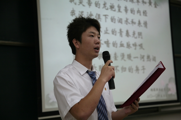 张业华副书记为本次比赛致辞,他说,经典诵读活动的开展让同学们在老师的指导下,学习经典诗词,丰富自身的内涵。他希望能把这项非常有意义的活动扩展开来,让更多的同学加入到诵读经典的队伍中来。