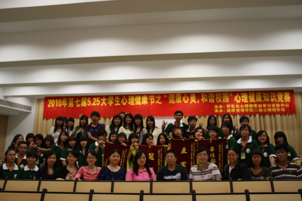 经过初赛和复赛的角逐,来自经济管理学院、计算机技术系、医学系、人文教育系和外语系等九支代表队进入了决赛,进行最后一轮“心理”较量。本届心理健康知识竞赛在抢答题、风险题等具体细节上加以创新,各支参赛队伍准备充分,在各个环节中都充分发挥了团队合作精神。比赛竞争激烈,场上场下互动参与,赛场气氛甚是活跃。经过激烈角逐,人文教育系代表队、计算机技术系代表队和经济管理学院代表队脱颖而出,分别夺得冠、亚、季军;计算机技术系获得“最佳组织奖”。