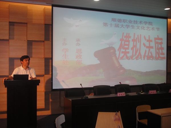 6月9日晚上,由学生处主办,思想政治理论课教学部承办的顺德职业技术学院第十届文化艺术节——“大学生就业、创业与权益维护”模拟法庭和“学风建设,你我同行”动感校园辩论赛决赛在11栋5号学术报告厅举行。学校陈粟宋副院长、纪委谭谦章书记、宣传部刘晓顺部长、学生处陈曦处长及相关职能部门领导与院系主任、书记出席了本次活动。