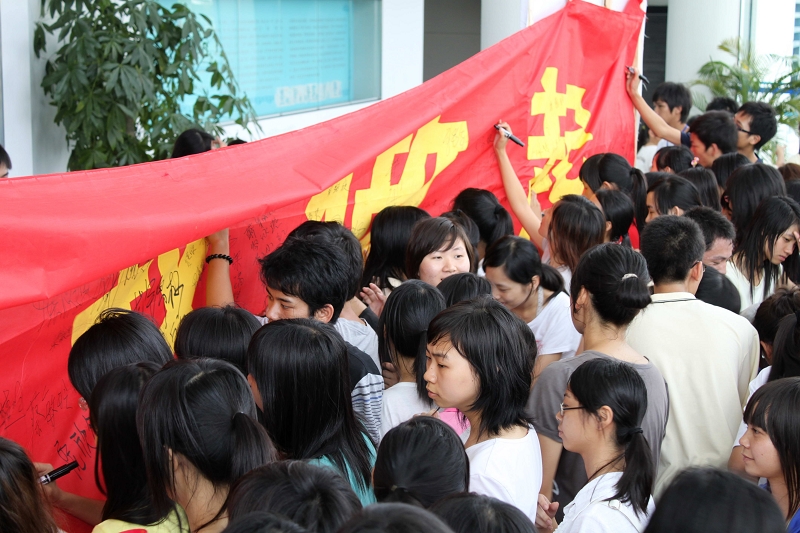 5月18日下午,在梁銶琚堂内举行了“抵制手机色情网,从我做起”学生签名活动。有来自各系(二级学院)近800名同学参加了这次活动。