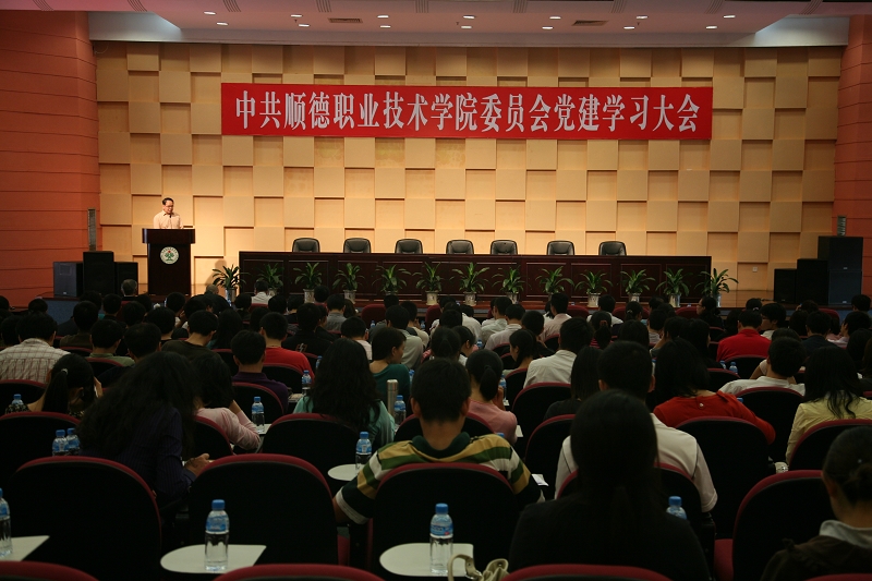 4月21日,中共顺德职业技术学院委员会党建学习大会在学术报告厅召开。校领导陈智、何锐连、罗勇武、谭谦章、刘毓、徐刚和全校教职工党员出席会议。何锐连副书记主持会议,并传达了胡锦涛总书记在全党深入学习实践科学发展观总结大会上的讲话精神。