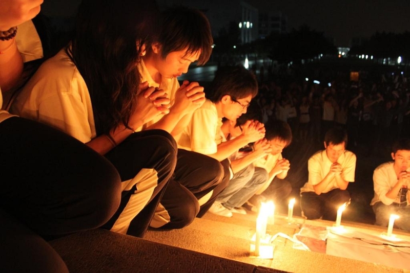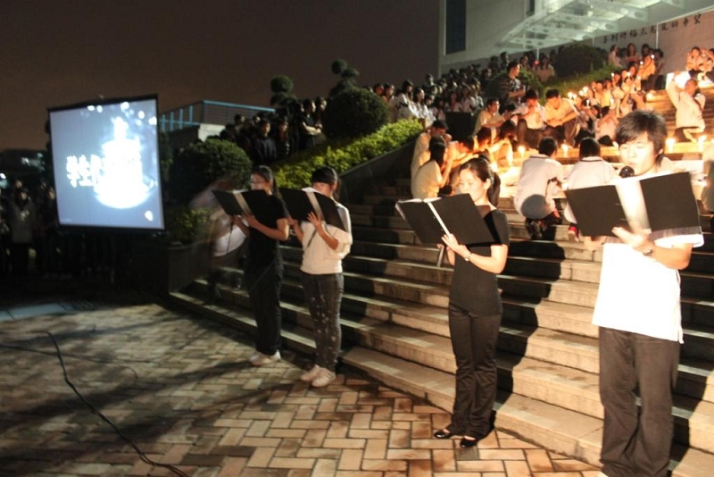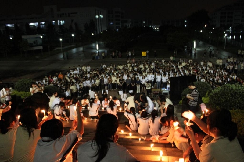 4月21日晚上,taptap近千名师生自发来到梁球踞礼堂广场举行顺职学子心系玉树烛光追悼仪式,向青海玉树地震受难同胞致哀。