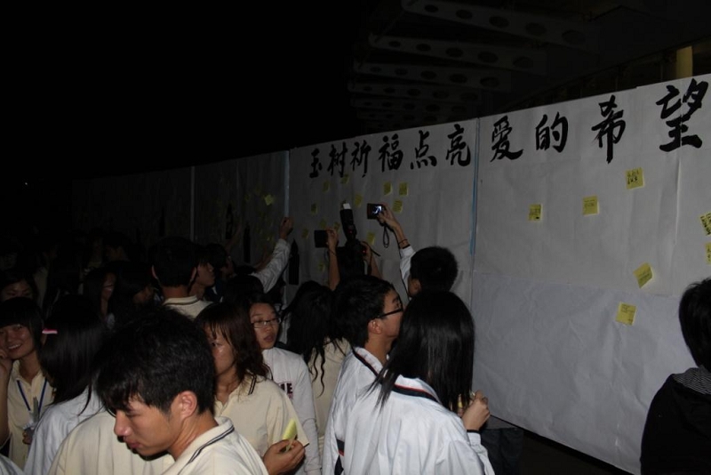 仪式结束后,同学们纷纷将祝福贴在祈福板上,大家高声齐呼:“中国加油!玉树加油!”经久不息的呼声响彻顺职校园,现场许多同学情不自禁地流下激动的泪水:“我很自豪,我们中国人是不可战胜的!” 一位接受媒体采访的同学说:“我很感动,不过我们要化悲痛为力量,好好学习,这才是对灾区最大的支持!”