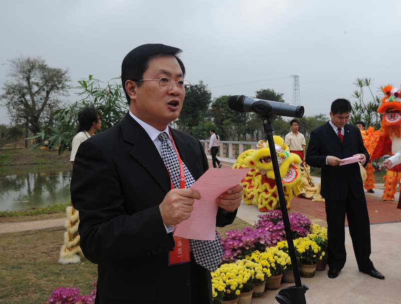 学校校董、广东恒基金属制品有限公司董事长孙志恒代表纪念公园捐赠者发言。他说,顺德职业技术学院是我们顺德人自己的大学。在校庆之际,作为“智园”捐建者——9位顺德人和14家企业,在这片占地近百亩的桂畔河边修建了这所公园,以助师生们工作、学习之余愉悦身心、陶情逸性。今日得见其成,十分感激和高兴。他坚信,将有更多的优秀人才在这里成长,成为社会的栋梁。