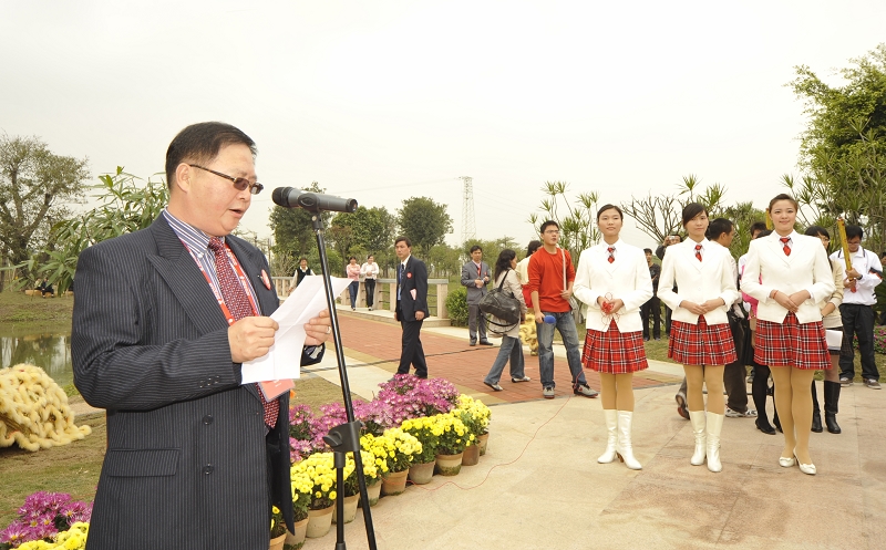 广东省人大常委会副主任陈用志,华南理工大学校长李元元,佛山市委常委、顺德区委书记刘海,佛山市委常委、常务副市长周天明,顺德区区长梁维东,顺德区委副书记周志坤,原顺德市委副书记杨肖英,学校董事会荣誉主席梁洁华,学校校董会副主席汤伟立,校董罗景云,纪念公园捐建人士代表、华润公司董事局主席梁俊谦,德力公司董事长张锦绵,恒基金属公司董事长孙志恒,香港顺德联谊总会主席李塔源,中国工艺美术大师、纪念石碑题字者刘泽绵,顺德职院院长夏伟教授、副书记陈智教授上台为十周年纪念公园剪彩。