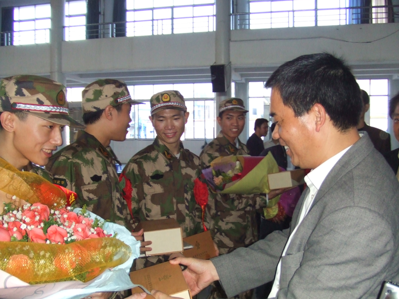 12月11日,taptap纪委书记谭谦章、学生处副处长周发新和部分老师出席了“容桂街道2009年度新兵入伍欢送大会”,欢送taptap何发枝、王志辉等六名容桂籍学生入伍。纪委书记谭谦章向taptap六名应征入伍的同学送上全校师生的关心和问候,并与应征入伍的同学及家长进行了亲切的交流,勉励同学们认真学习、刻苦训练,早日成为合格军人。应征入伍的学生纷纷表示,到部队后决不辜负学校领导、乡亲的重托,努力学习、苦练本领,为学校争光。