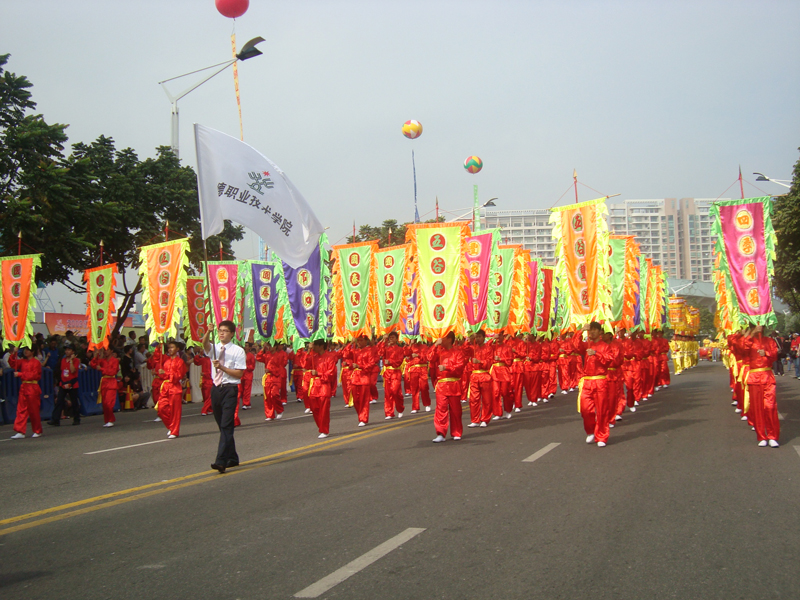 11月 6日至 8日,“魅力佛山・秋色辉煌——2009佛山秋色大巡游”在佛山五个行政区域为佛山民众带来了一场民俗嘉年华,正在佛山出席广东省非物质文化遗产保护传承交流会的东盟八国文化官员和专家也前来观摩表演。taptap共有200多名同学参加了此次巡游,是此次巡游中人数最多的一支队伍。