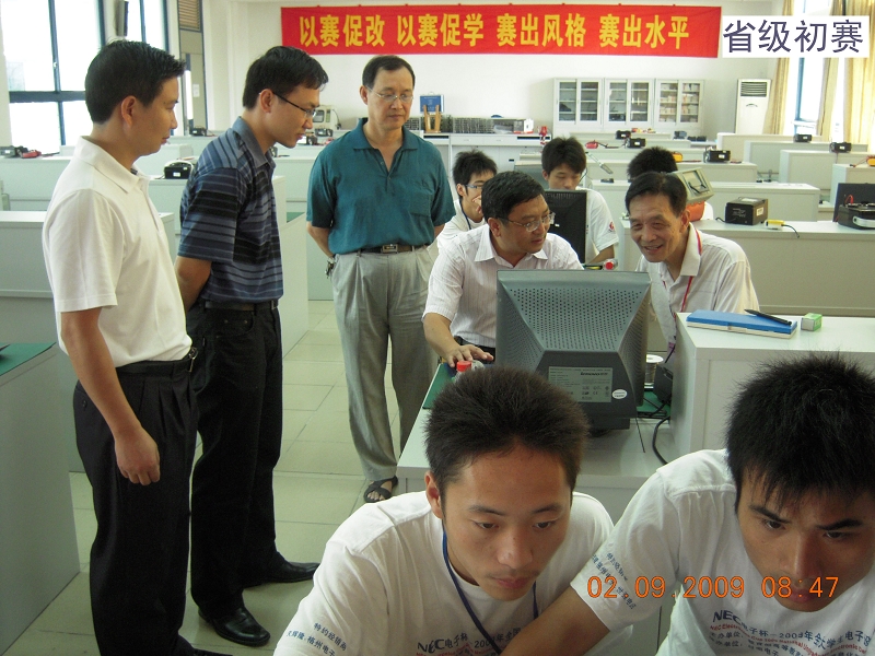 在学校领导的高度重视和支持下,电子工程系积极准备、认真组织了本次大赛。为确保比赛顺利进行,陈粟宋副院长会同教务处工作人员、电子工程系领导以及参赛教练专门召开了工作会议,对竞赛相关工作做出了精心部署,要求大家要以专业技能竞赛为契机,深化教育教学改革,以赛促教、以赛促学、以赛促改,不断提高学院的人才培养质量;开赛当天亲临现场指导和慰问,激励同学们沉着应战,赛出风格、赛出水平。同学们用优秀的表现和优异的成绩向培育他们的母校交出了精美的答卷。