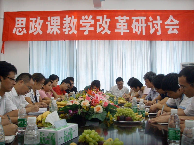 9月25日下午,思想政治理论课教学部在部门会议室举行了思想政治理论课教学改革研讨会。思政课部全体教师参加会议,并邀请了顺德第一中学高中部政治课周祥奉老师、顺德梁銶琚职业技术学校政治课陈赣宁老师以及陈村职业技术学校政治课易梅老师参与研讨。会议由思政课部负责人李霞老师主持。